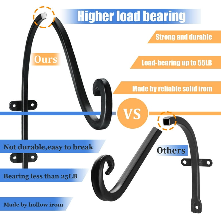 Ymam Light Heavy Duty Hanging Plant Bracket 16in Plant Hangers Bracket Outdoor Wall Mount Hanging Basket Bird Feeder Hooks Bracket Black Set Of 2 Walmart Com